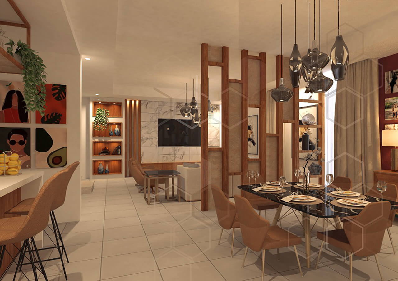Home for a family of 4 located in a gated community of Abu Dhabi. ExCube team provided Interior Design services with concept design, material selection, detailed design of joinery works keeping in careful consideration the client requirements. the materials and colours were carefully selected to carry through a warm, cozy yet elegant home.